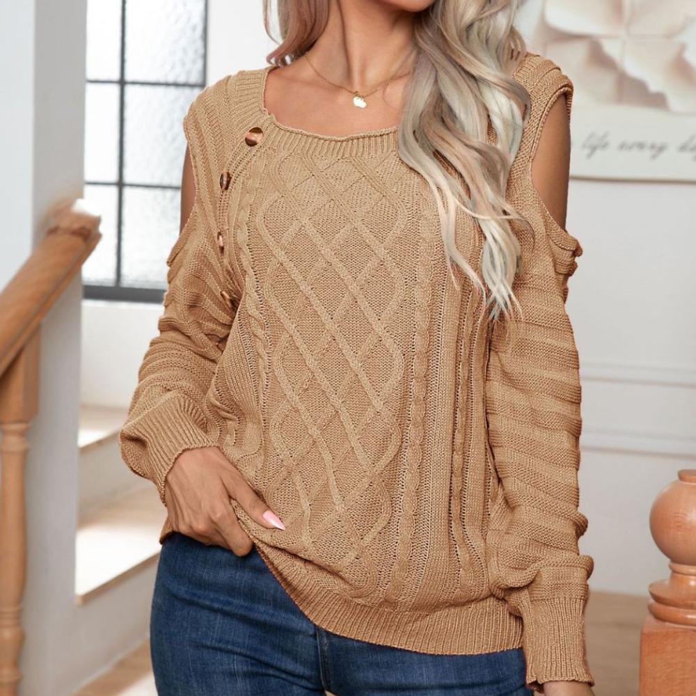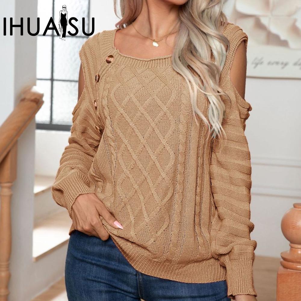 IHUASU Женский пуловер с квадратным вырезом на пуговицах, без бретелей, с длинными рукавами, из витого трикотажа