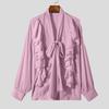 INCERUN Мужские рубашки с длинным рукавом и оборками, завязывающиеся на резинке, прозрачные многослойные топы с воланами