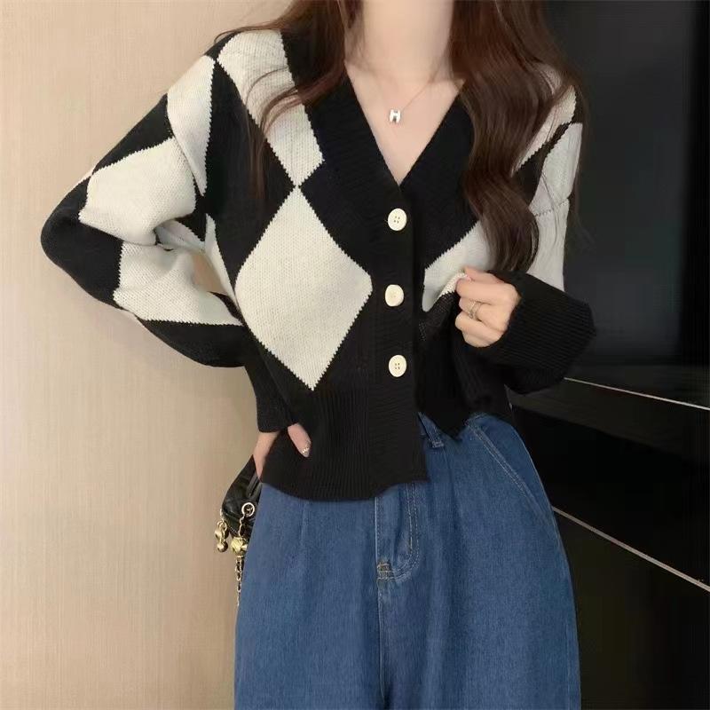 Весенне-осенний женский свитер с v-образным вырезом, нижнее белье, короткий свободный вязаный свитер, кардиган, топы