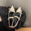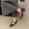 Весна-лето Новые женские туфли-лодочки с острым носком, декоративной пряжкой, черным мелким ремешком сзади, средний каблук, одинарные туфли для женщин 2024