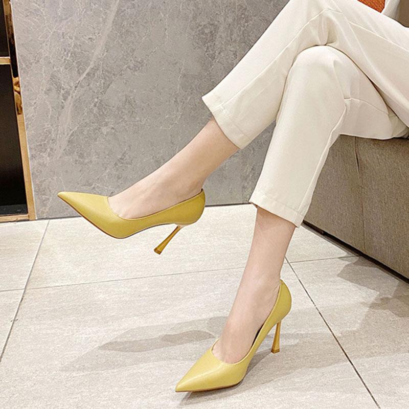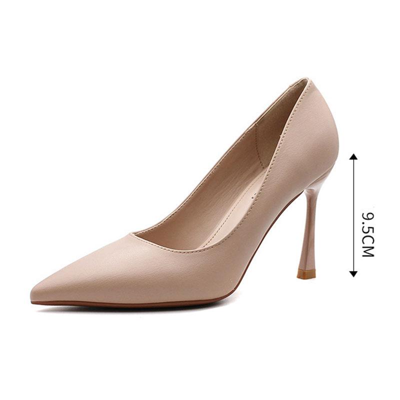 Женские туфли-лодочки однотонные на тонком высоком каблуке с острым носком для вечеринок, свадеб, офиса, леди, туфли на шпильках, сексуальные, с низким каблуком 9,5 см, для женщин