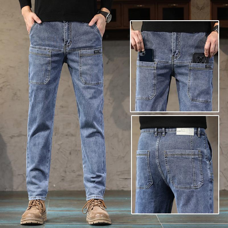 Шесть карманов джинсы мужские новые эластичные Slim tide бренд свободные прямые повседневные длинные брюки тренд