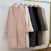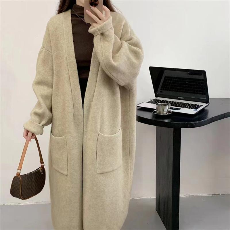 Большой размер ленивый стиль длинный вязаный кардиган женский осень и зима новый корейский вариант свободный V-образный вырез двойной карман свитер куртка прилив