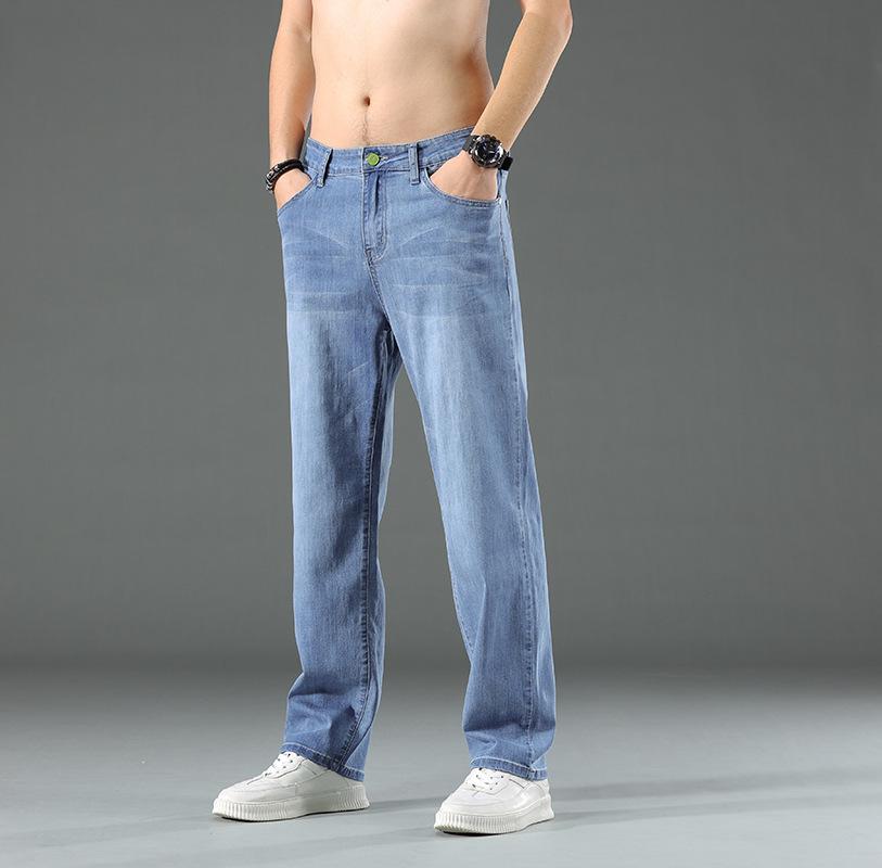 Джинсы мужские свободные летние новые брюки большого размера мужские тонкие летние повседневные универсальные мужские прямые брюки