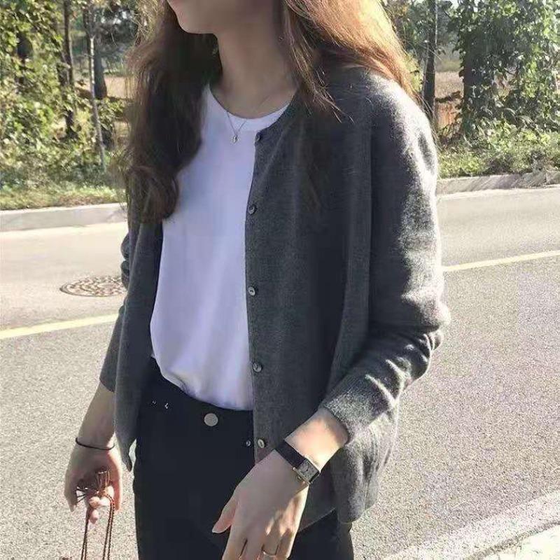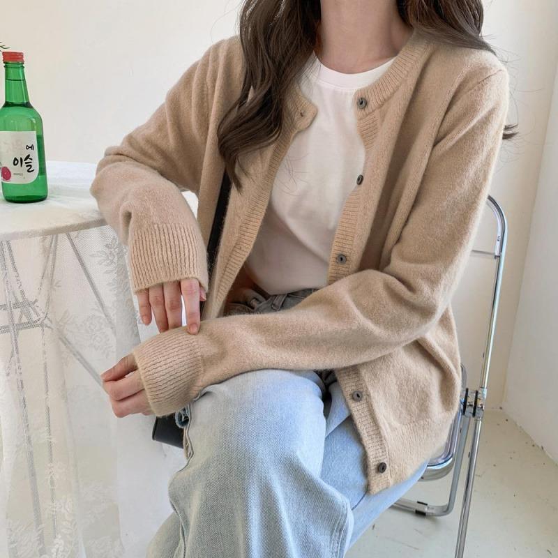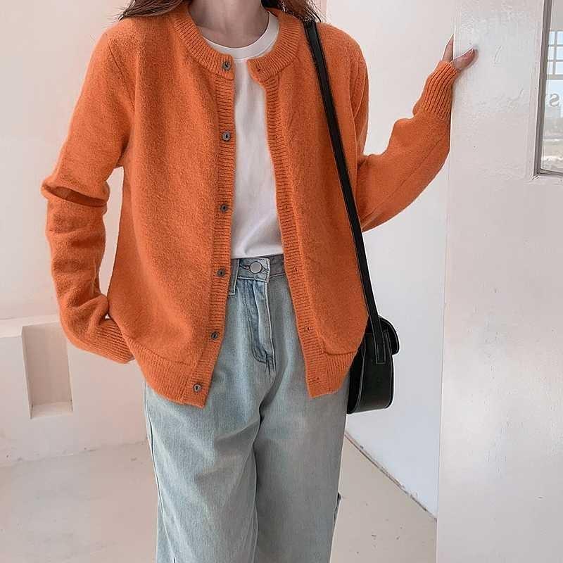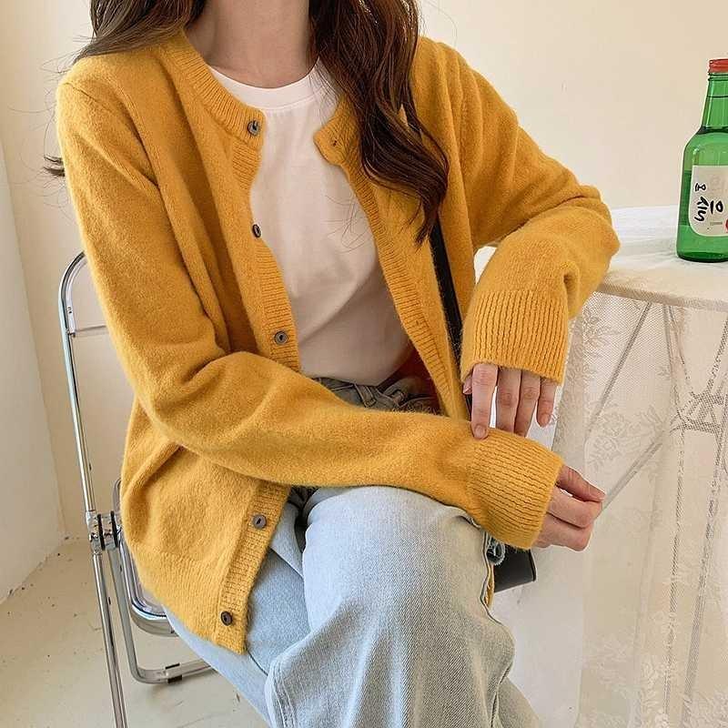 Осенне-зимний однотонный элегантный вязаный кардиган для женщин, свободная верхняя одежда, свитер с длинным рукавом, куртка, женская мода, круглый вырез, повседневное трикотажное пальто 24887