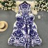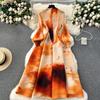 Французский стиль, роскошное платье для женщин 2024 года, новейшее длинное платье с о-образным вырезом и рюшами в стиле тай-дай