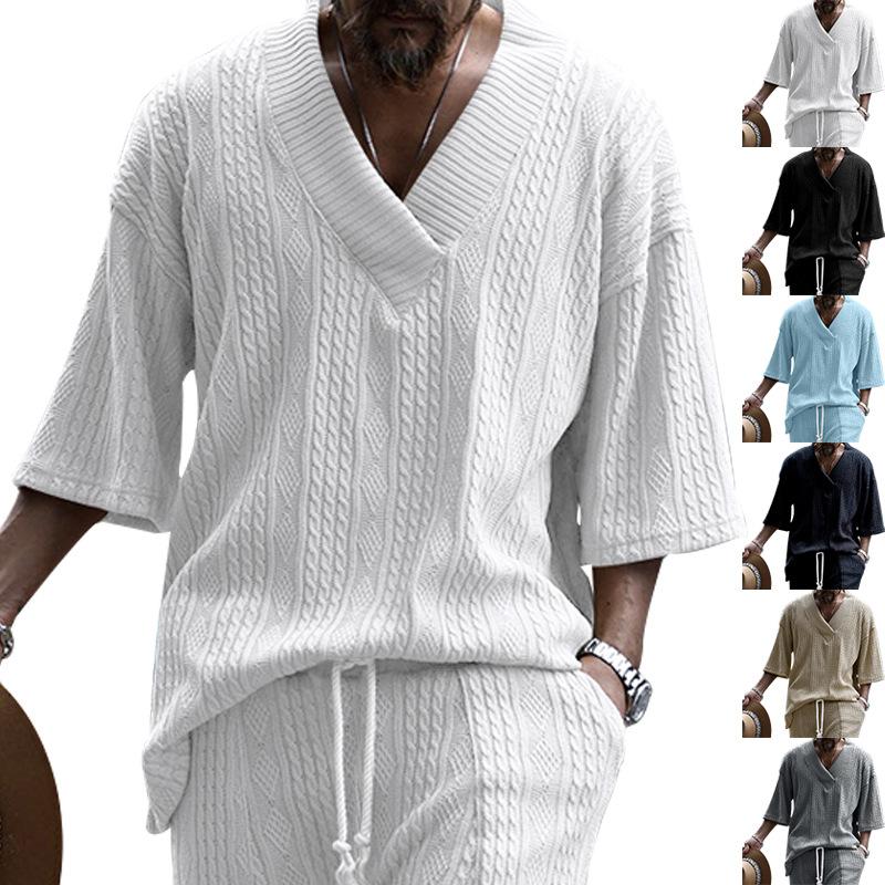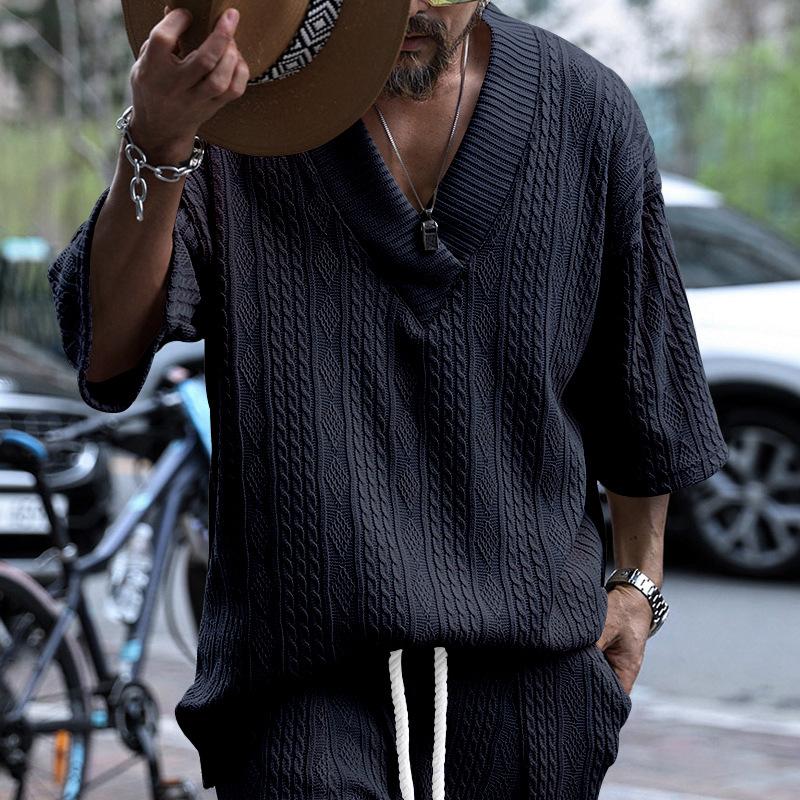 Мужская повседневная трикотажная футболка мужская летняя свободная футболка с коротким рукавом свободная спортивная однотонная футболка с V-образным вырезом мужская