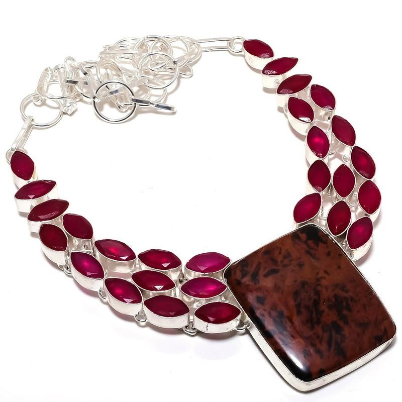 Ожерелье из серебра 925 пробы с обсидианом красного дерева и рубином, 18 дюймов MQ-1230 — купить товар онлайн с бесплатной доставкой по всему миру!