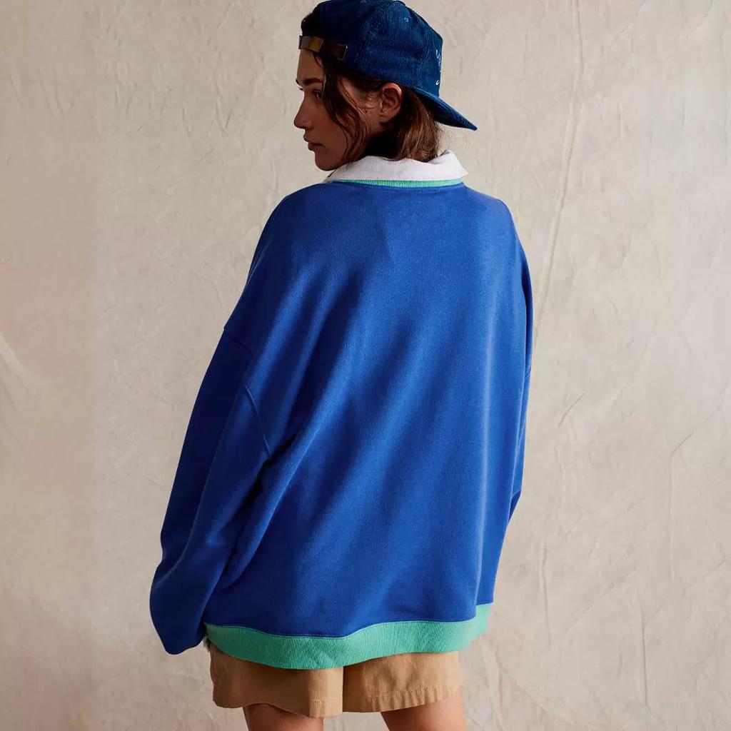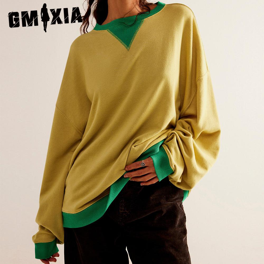 GMXIA Уличный стиль, цветной контрастный топ с длинными рукавами, свободные плечи, круглый вырез, толстовка с капюшоном, пальто для женщин, весна и осень