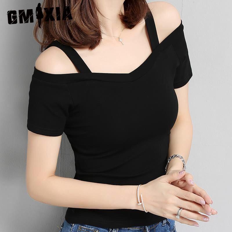 GMXIAT Женская летняя черная L Футболка с открытыми плечами, халтер, с коротким рукавом, женская, с вырезом лодочкой, с открытыми плечами, сексуальный топ, тренд — купить товар онлайн с бесплатной доставкой по всему миру!