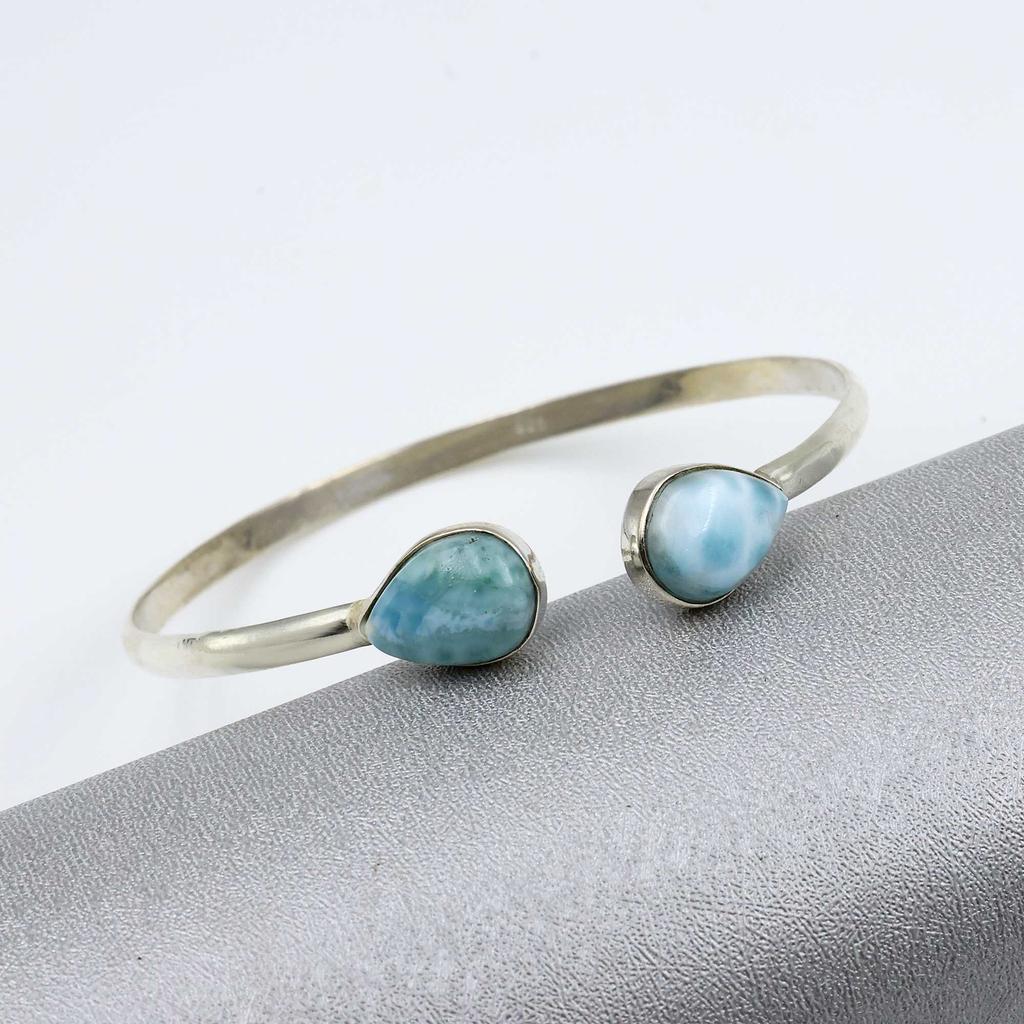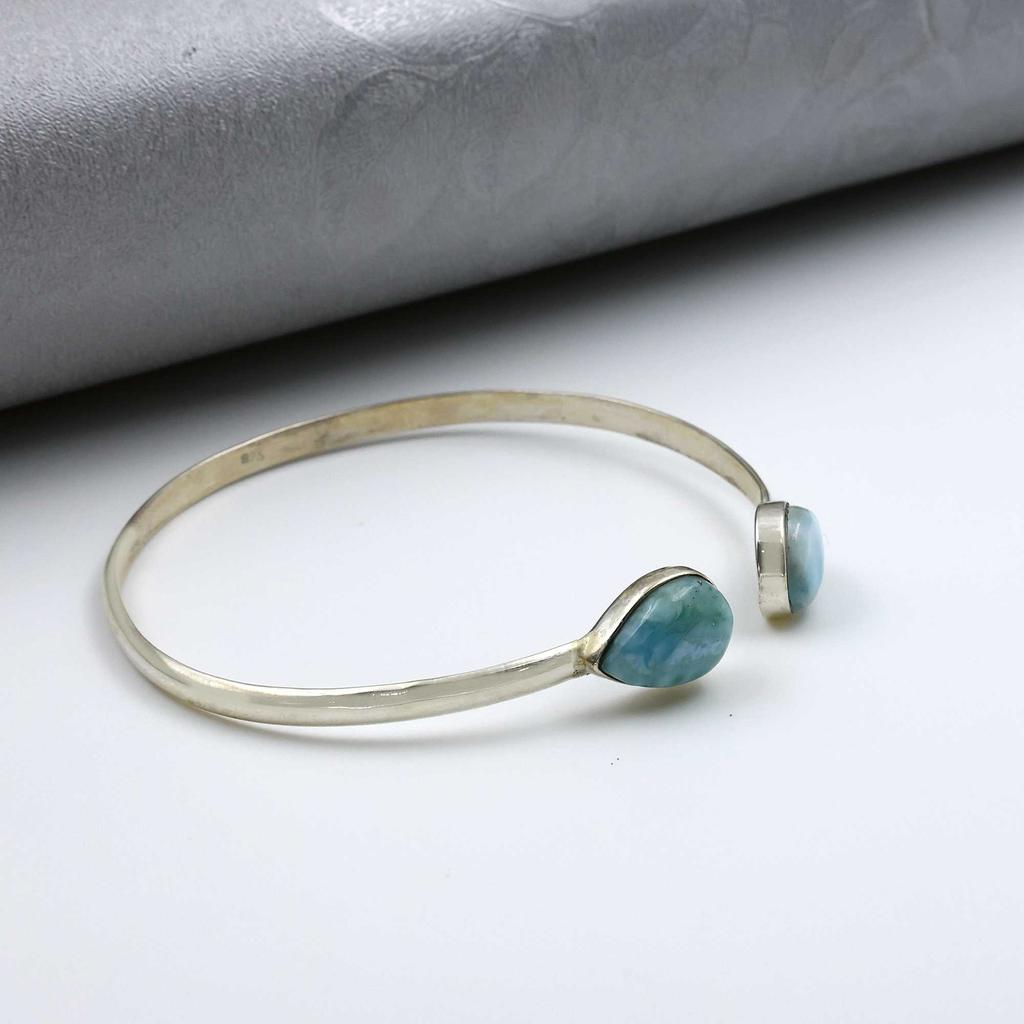 Браслет-манжета из натурального камня Ларимар, украшения ручной работы, женский браслет, серебро 925 пробы, регулируемый браслет