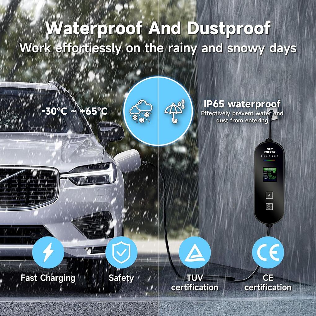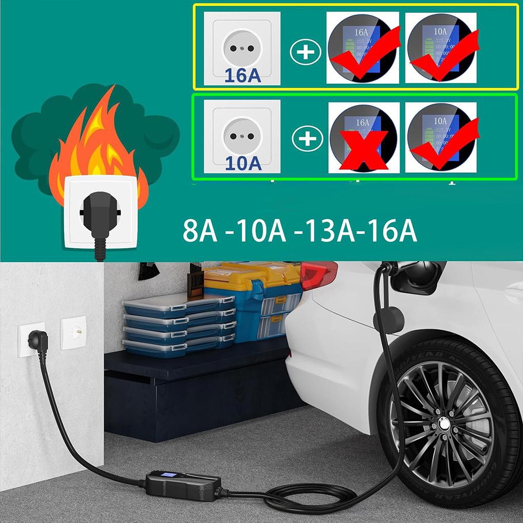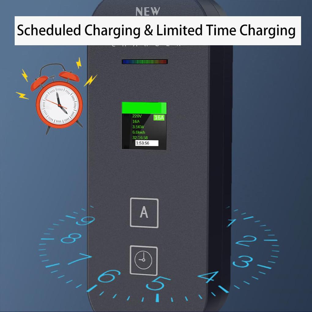 Зарядное устройство для электромобиля TYPE-2, зарядный кабель, настенная зарядная станция для электромобиля со светодиодным цифровым дисплеем, электрическое зарядное устройство 3,5 кВт 5 м 8-16 А