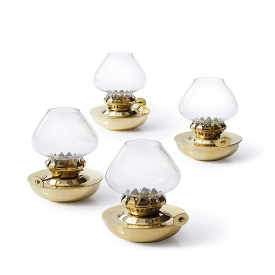 Набор из 4 старинных стеклянных масляных ламп, латунных мини-масляных ламп, антикварных масляных ламп для домашнего декора, оформления свадеб в морском или викторианском стиле.