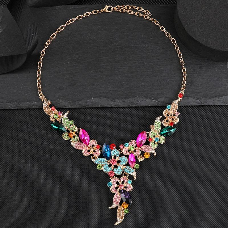 GemChic Женские новые изысканные ожерелья из сплава с ветками цветов и кристаллами, стразами, ключицы, серьги, комплект из двух предметов, подарок на день рождения, Рождество