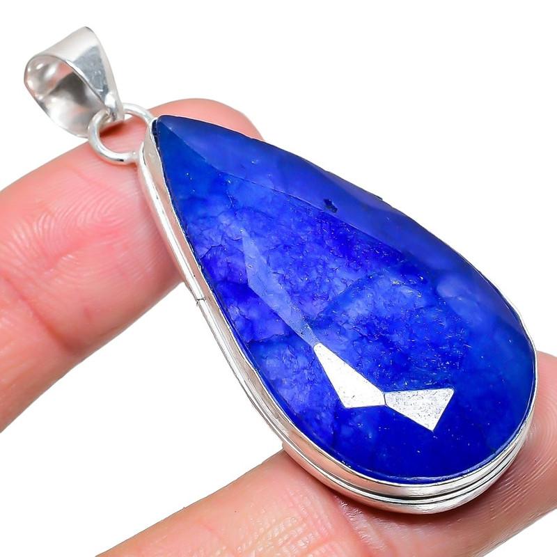 Сапфир(Смоделированный) Подвеска из серебра 925 пробы с драгоценными камнями ручной работы 2,17 дюйма AH-912