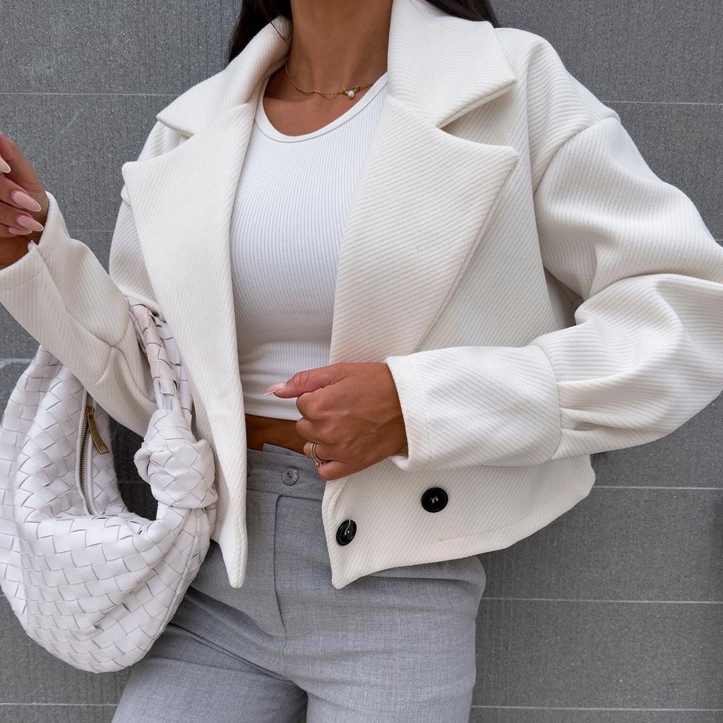 GMXIA Осень-зима мода универсальный костюм воротник однотонный короткий шерстяной пальто женские куртки и пальто