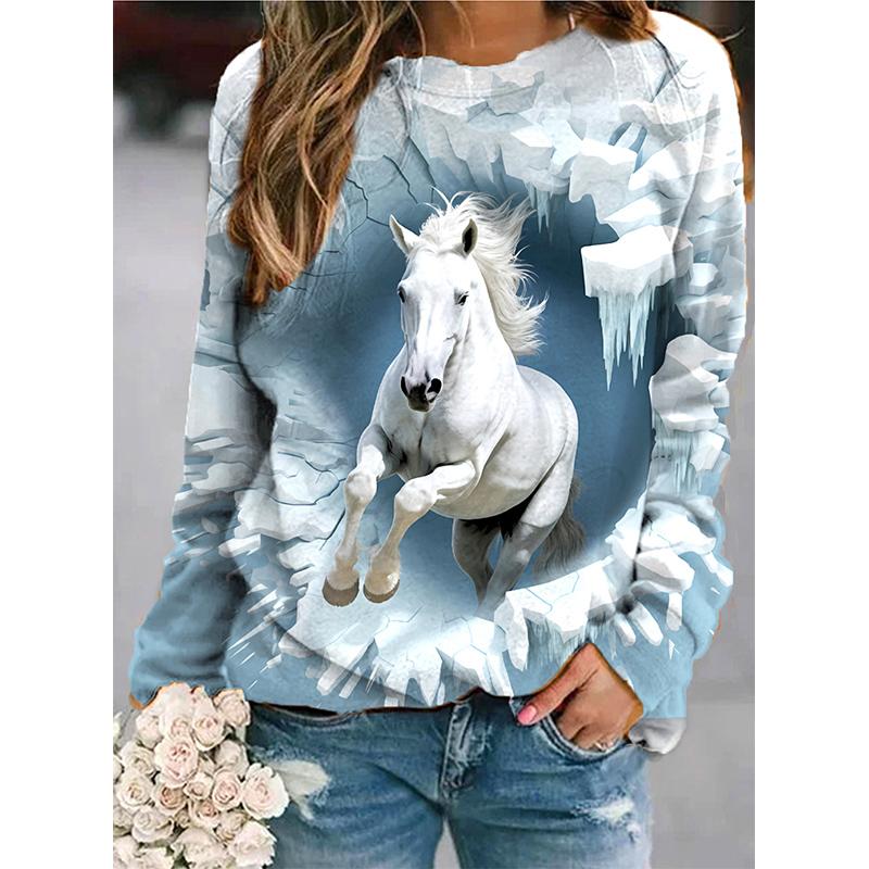 Осенние толстовки с лошадьми, толстовки с 3D-принтом животных, женская мода, длинный рукав, толстовка Y2k, свободные пуловеры, топы, женская одежда