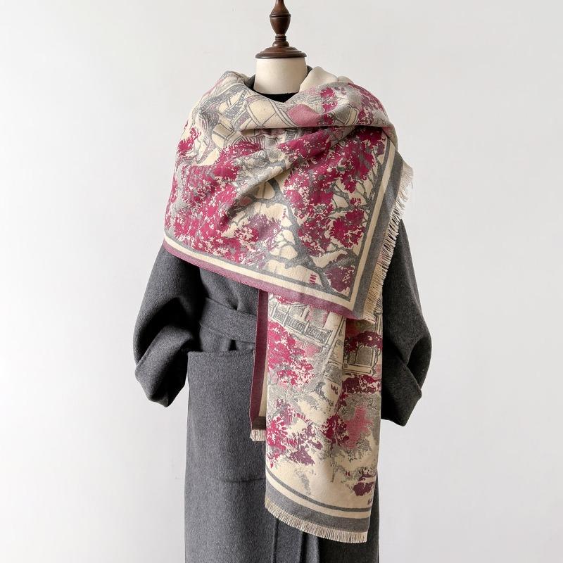 2024 Новый осенне-зимний шарф с утолщенным искусственным кашемиром, двухсторонний, противохолодный и ветрозащитный теплый шарф с принтом для женщин