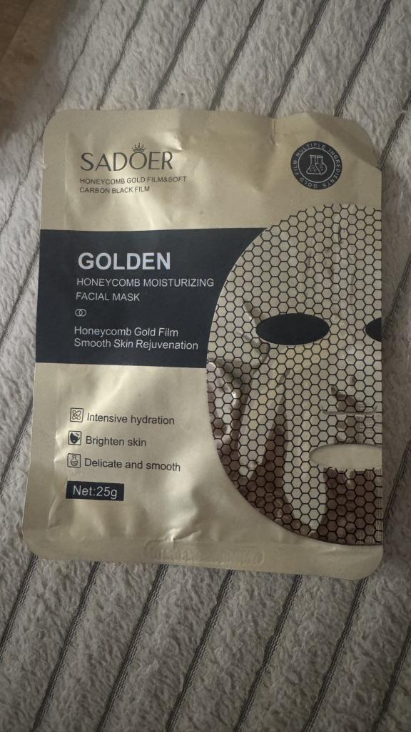 Маска для лица с золотыми сотами очень деликатно воздействует на кожу лица,имеет приятный запах.Масочку держала 20 минут затем дала время впитаться,после высыхания нет липкости,кожа хорошо увлажнилась,стала нежной и гладкой и я почувствовала отбеливающий эффект,кожа стала светлее.Аллергии не вызвала,буду заказывать ещё.Рекомендую данный товар,спасибо Джум!!!❣️