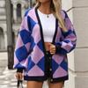IHUASU Женский осенне-зимний кардиган с V-образным вырезом и ромбовидной решеткой, свободная вязка, куртка, джемпер — купить товар онлайн с бесплатной доставкой по всему миру!