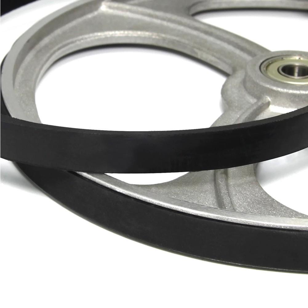 *Для того, чтобы противоскользящее резиновое кольцо можно было плотно соединить с внешним краем колеса и избежать проскальзывания и недостаточного режущего усилия из-за рыхлого резинового кольца, окружность всех противоскользящих резиновых колец должна быть меньше, чем окружность ленточного пильного колеса.