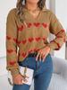 Женский пуловер с сердцем любви, свитера, вязаный джемпер с длинными рукавами и V-образным вырезом