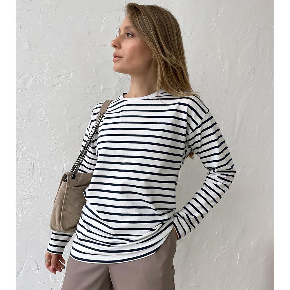 Весенняя полосатая футболка с длинными рукавами, универсальная европейская и американская повседневная футболка с круглым вырезом из чистого хлопка в полоску