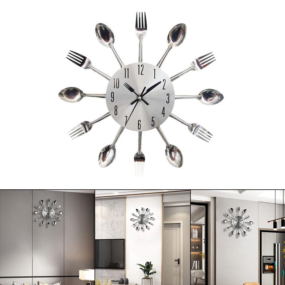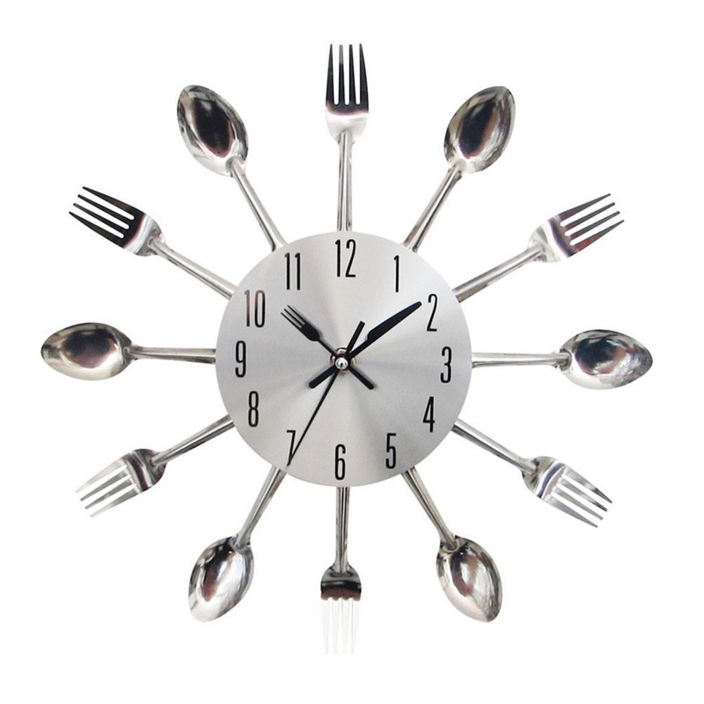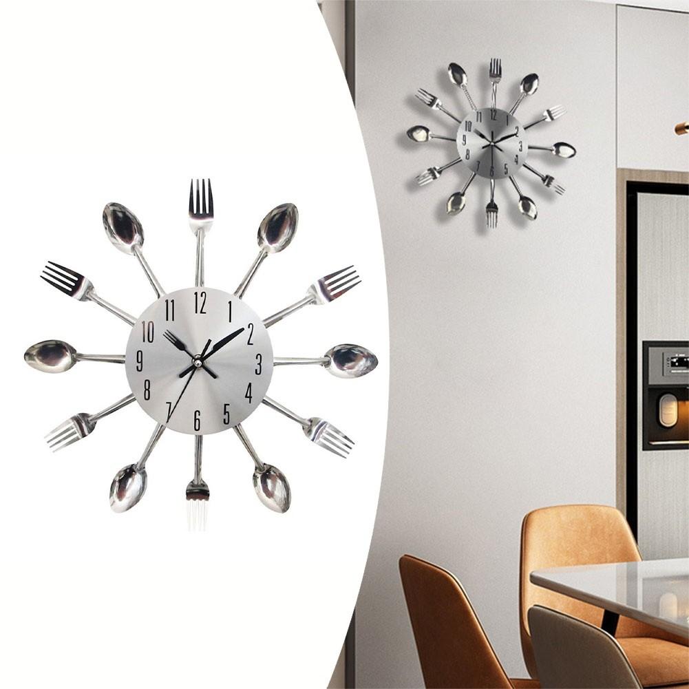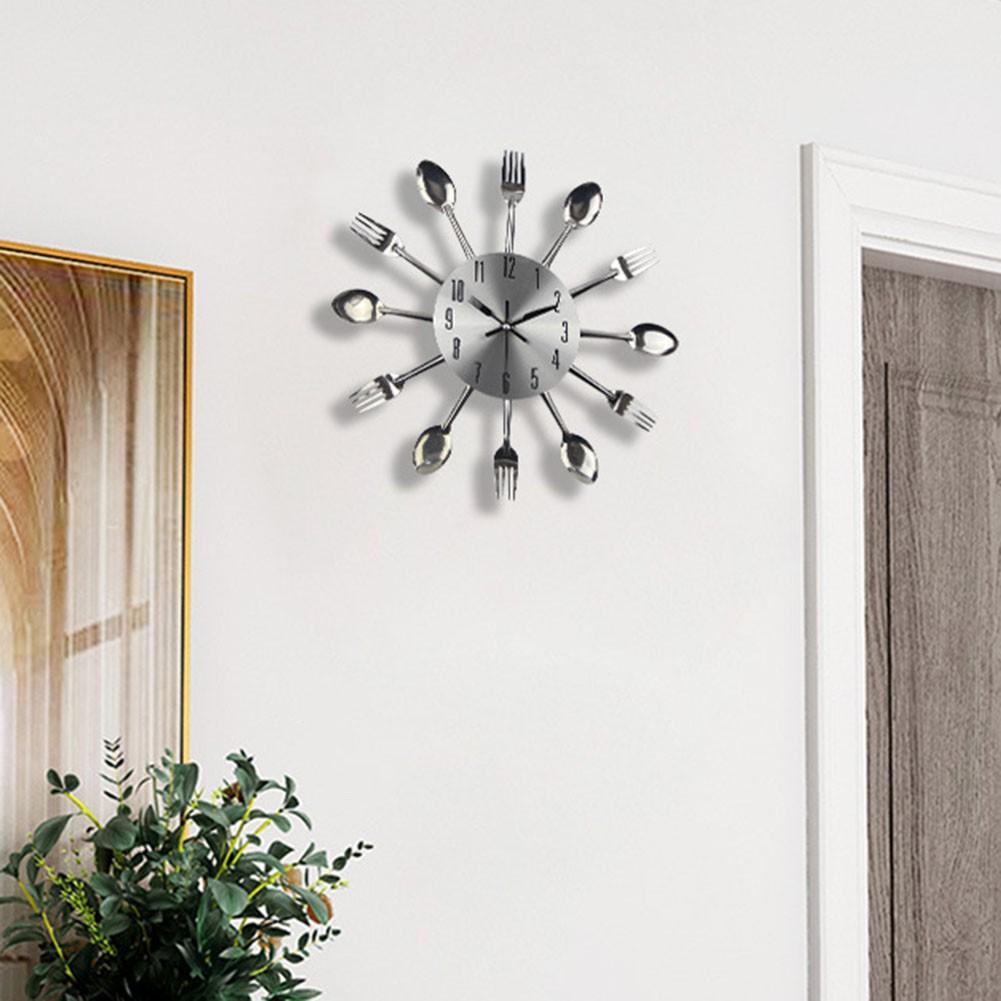 12-дюймовые 3D кухонные ложки-вилки настенные часы с бесшумным механизмом для домашнего декора