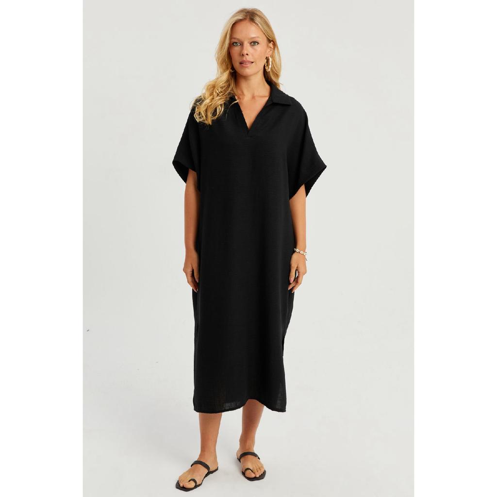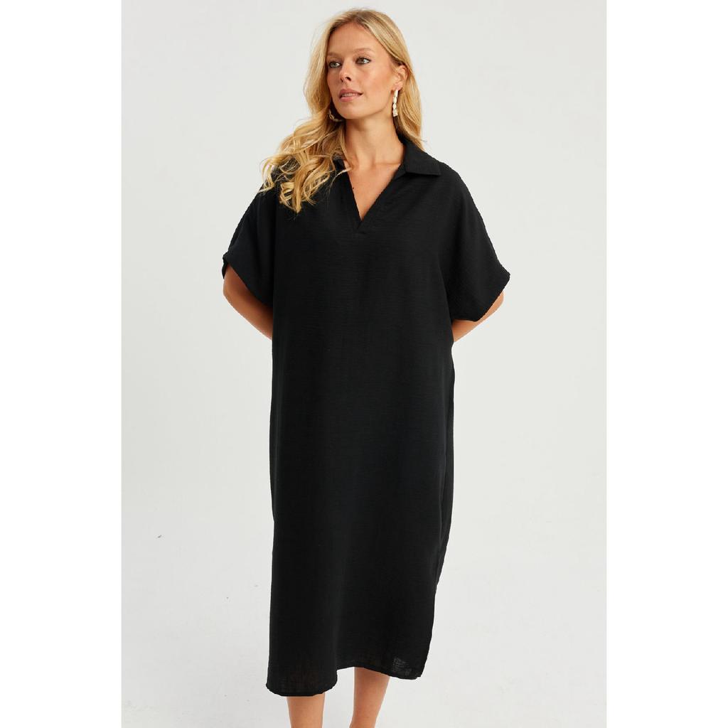 Женское черное льняное платье-миди Dmr85