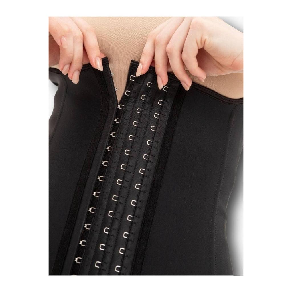 Послеродовой укрепляющий латексный корсет Trigoso черного цвета, модель B3. Благодаря специальной латексной ткани он обеспечивает мгновенное уменьшение области талии на 2 размера и имеет особенность формировать талию для длительного использования.