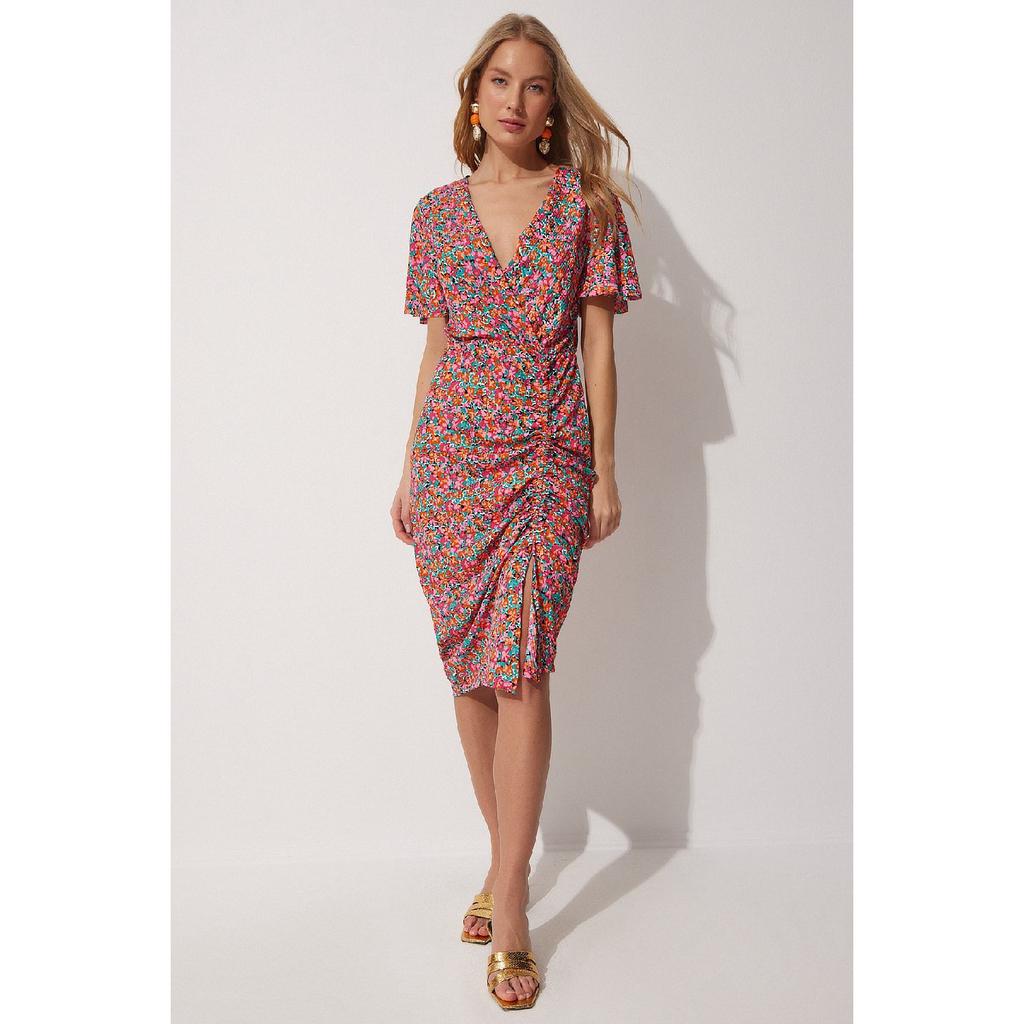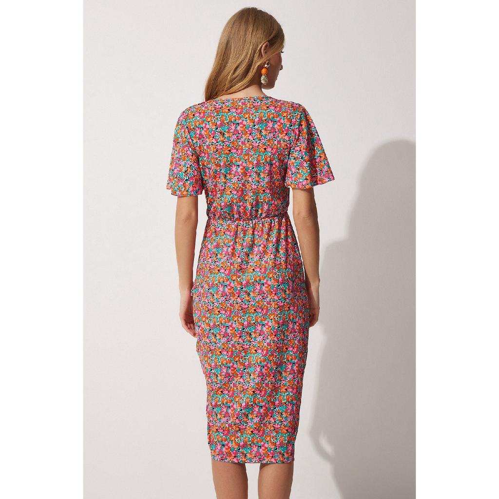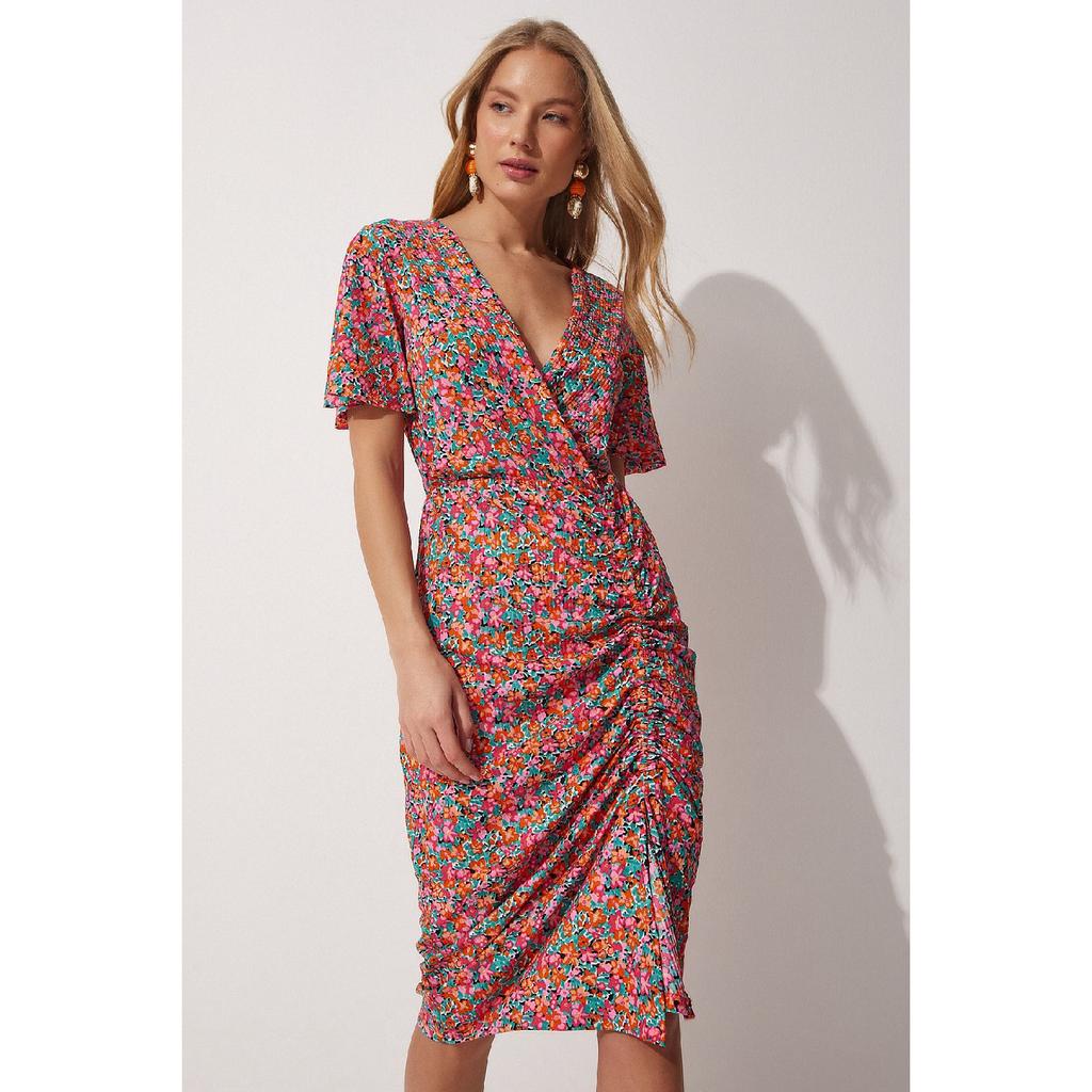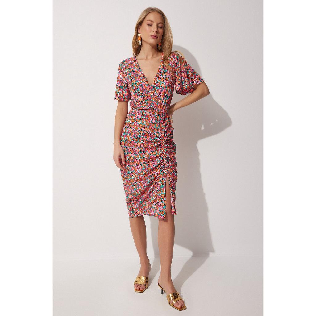 Женское розовое летнее платье с запахом и воротником-стойкой Mc00162