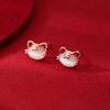 Серьги-гвоздики с опаловым тигром. Женские серьги с тигром по знаку зодиака. Серьги с тигром подходят для ношения.