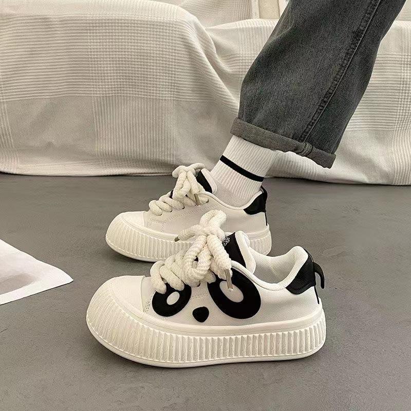 Черно-белая панда Белые туфли Детская осенняя новая студенческая мода Универсальная повседневная обувь на платформе