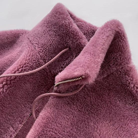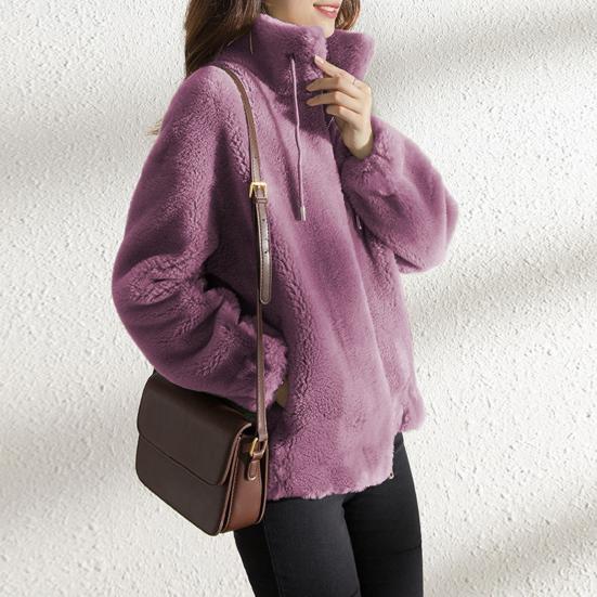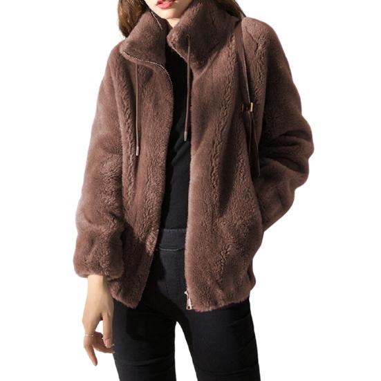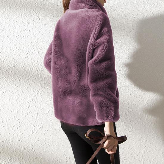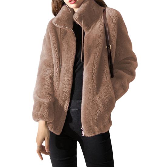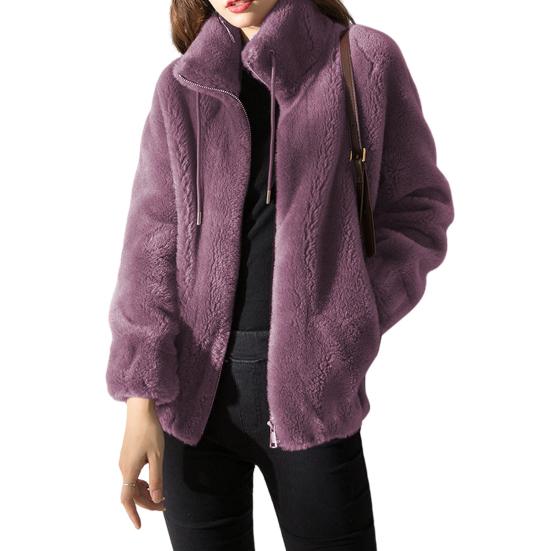 Представляем женскую плюшевую куртку — стильное и элегантное дополнение к вашему зимнему гардеробу.. Эта куртка имеет воротник-стойку и застежку-молнию для улучшенной теплоизоляции, сохраняя тепло и уют в холодную погоду..