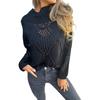 Женский свитер с круглым вырезом и длинным рукавом, ажурный дизайн, жаккардовый декор, вязаные топы, однотонный свободный покрой, повседневный свитер