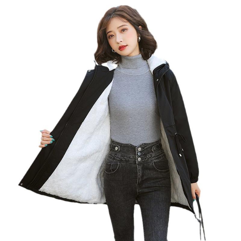 Весенне-осенняя женская модная ветровка средней длины с капюшоном из бархата