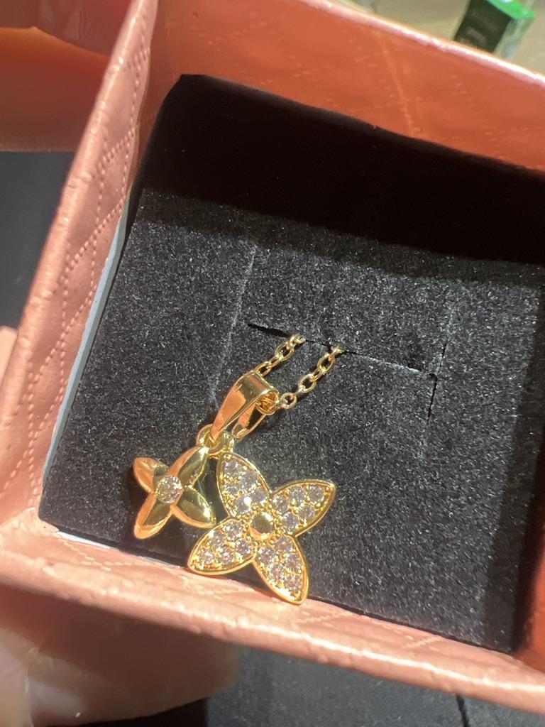 Niche Design New Double Four Leaf Flower Collarbone Ring Womens High Class Sense Of Sweet Tide Cool Do Not Lost Color Collarbone Chain
