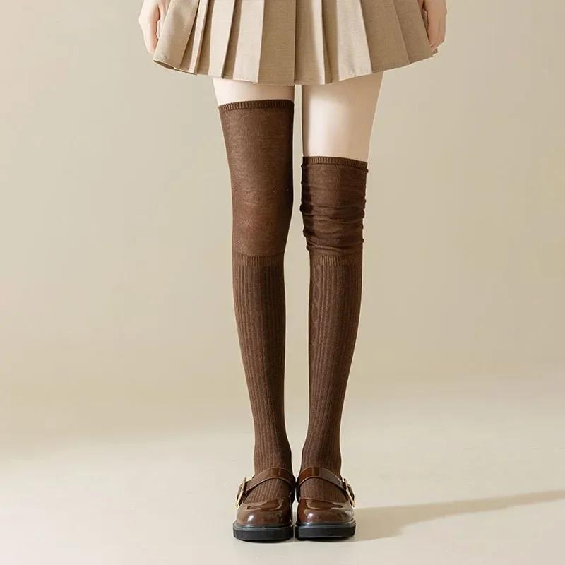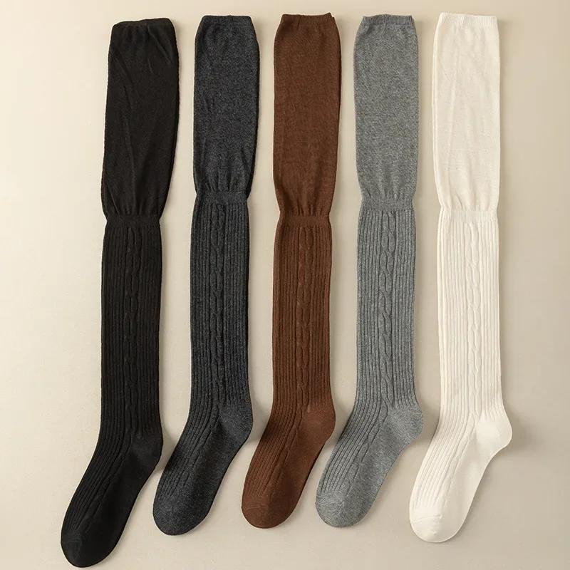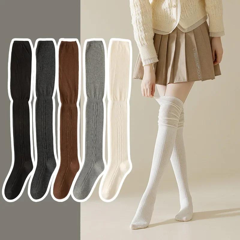 Женские чулки из хлопка, трикотажные, однотонные, длинные, высокие чулки, JK Girls Lolita Cute, высокие носки, высокие носки