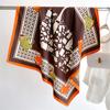 Люблю платки, но этот не очень понравился. Рисунок на фоне пропечатан как то не красиво . Расплывчато что ли. Но это мое мнение. А так сочетание цветов не плохое