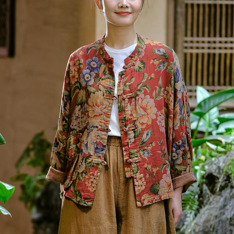 Женские повседневные топы с принтом в стиле ретро, весенние хлопковые и льняные куртки, женское винтажное пальто со стойкой на пуговицах — купить товар онлайн с бесплатной доставкой по всему миру!