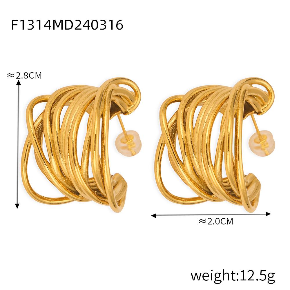 Серьги с преувеличенным геометрическим дизайном, нестандартные, из титановой стали с покрытием из 18-каратного золота, легкие, роскошные, невыцветающие серьги