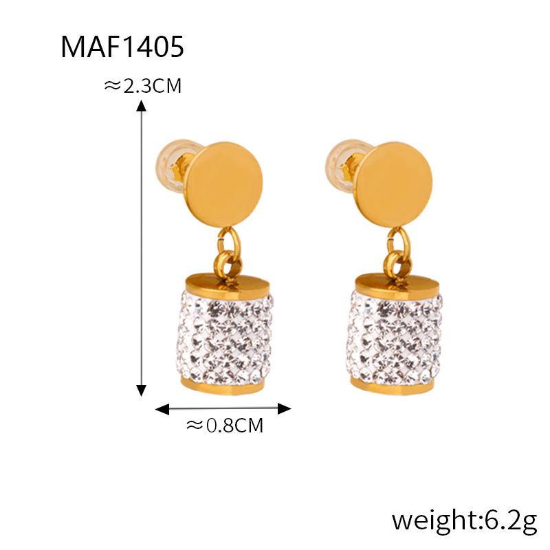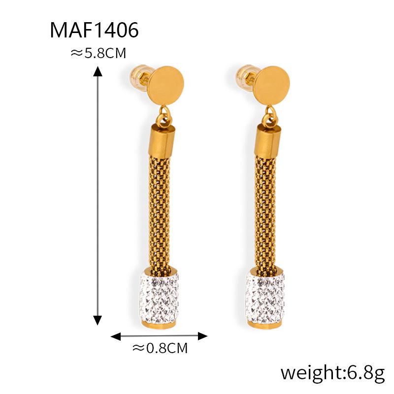 Классические серьги-пусеты цилиндрической формы с полным бриллиантовым паве Super Flash, женские модные серьги с длинной бахромой из титановой стали с золотым покрытием