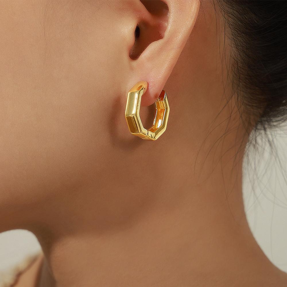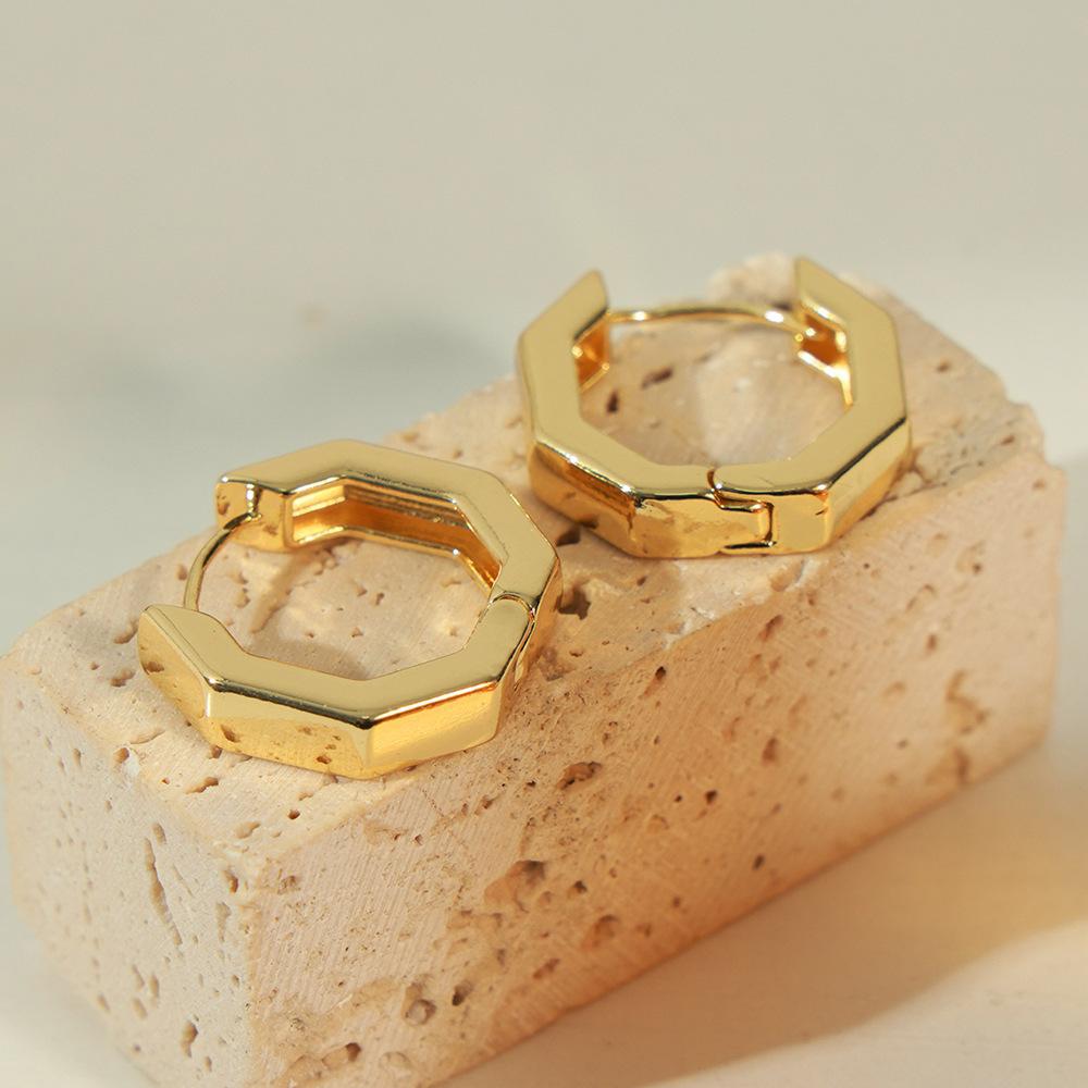 Популярные в Японии и Южной Корее серьги из 18-каратного золота с медным покрытием, элегантные универсальные геометрические многоугольные пряжки для ушей, креативный дизайн сережек