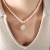 Французский темперамент натуральное жемчужное ожерелье нишевый свет роскошь ретро овальный инкрустированный белый морской ракушка кулон универсальный ювелирные изделия