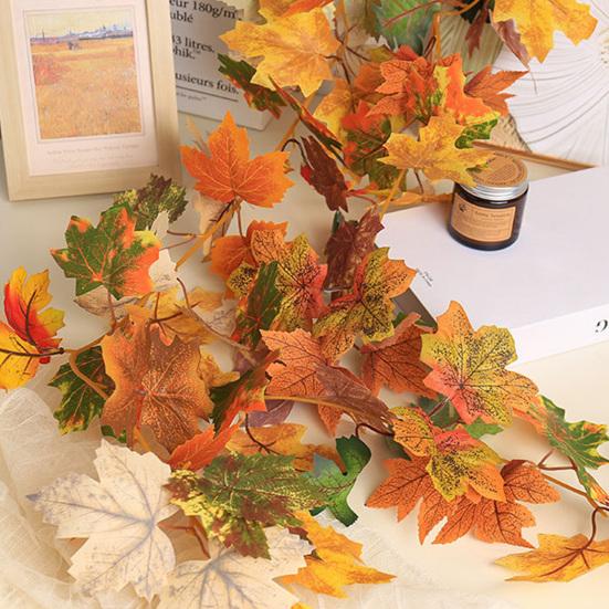 Украсьте свой осенний интерьер нашей гирляндой из кленовых листьев, которая прекрасно имитирует вид настоящих опавших листьев.. Эта гирлянда, выполненная в ярких тонах коричневого, оранжевого, желтого и зеленого, излучает тепло и уют, что делает ее идеальным украшением на осень, День благодарения и Хэллоуин..