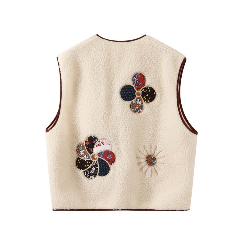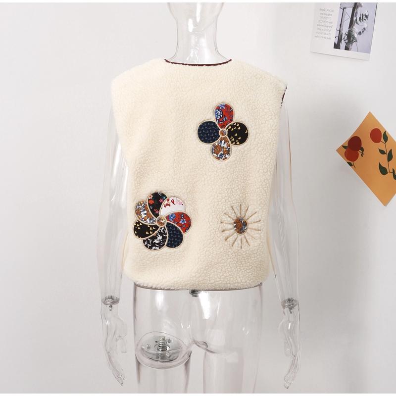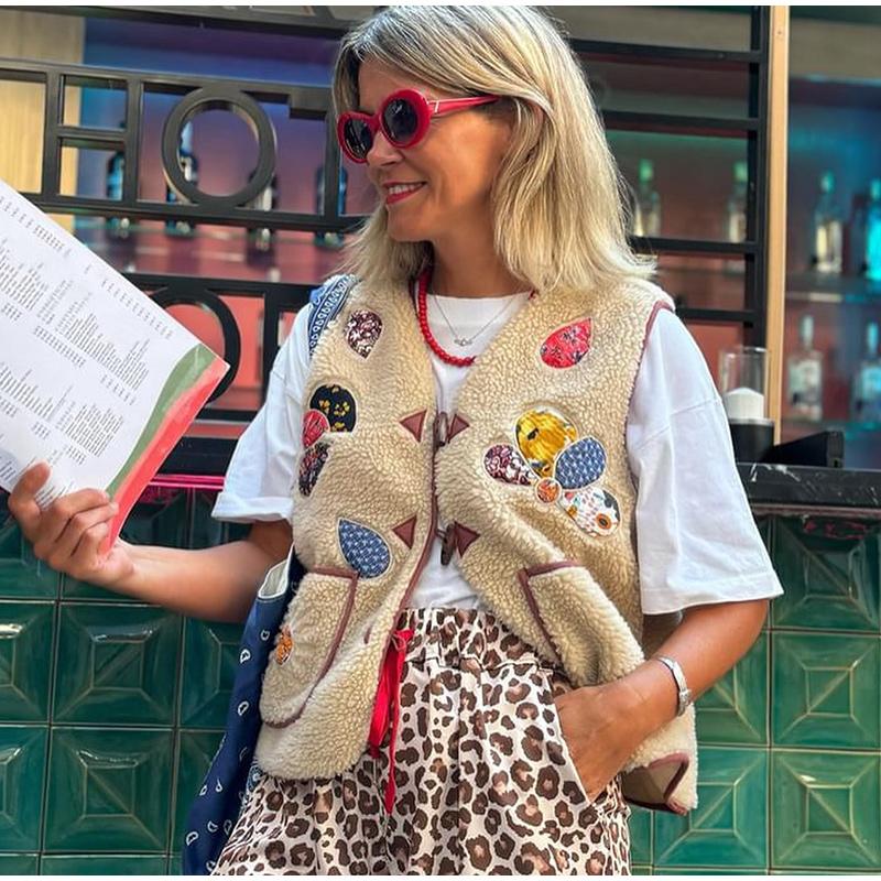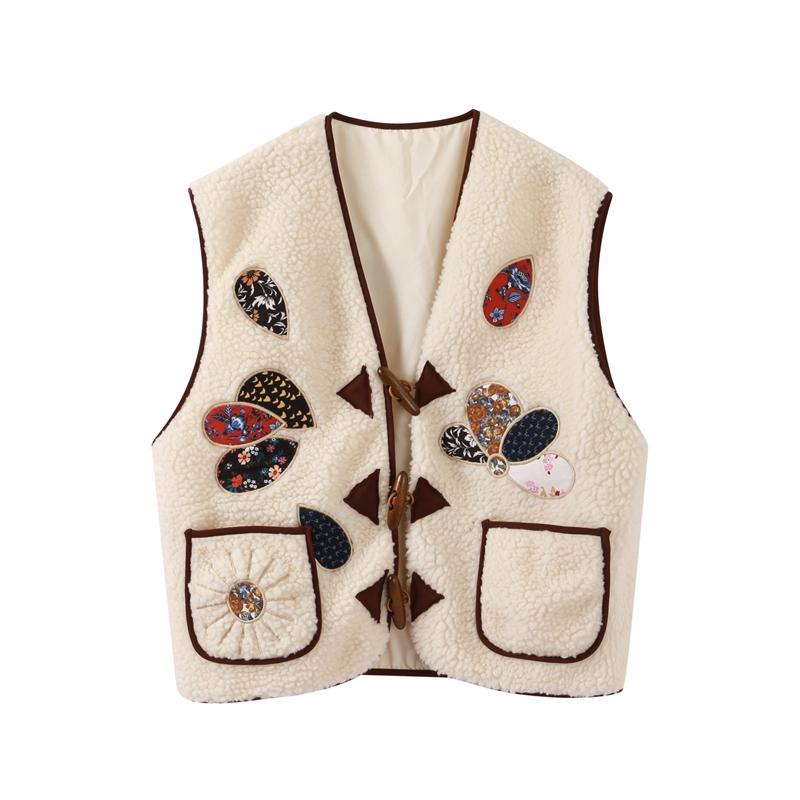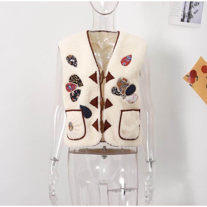 Женский жилет из овечьей шерсти с 3D-печатью, модный жилет без рукавов с V-образным вырезом и роговыми пуговицами 2024 года, новые утепленные женские майки на осень-зиму