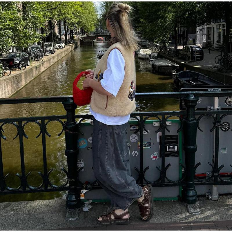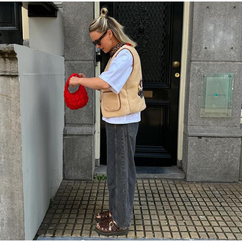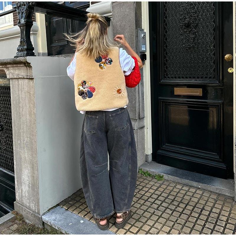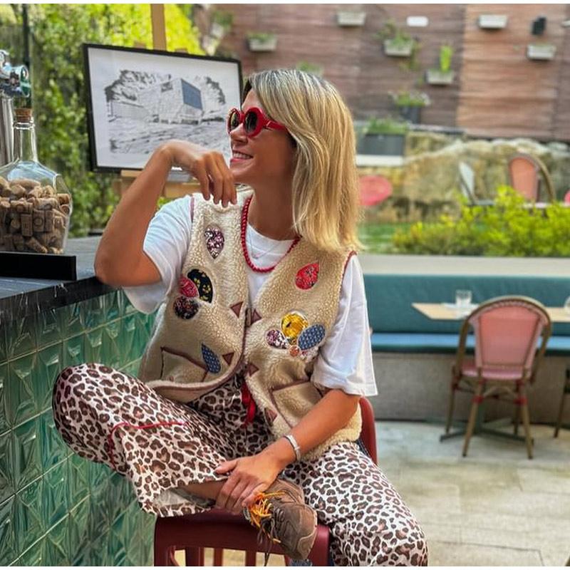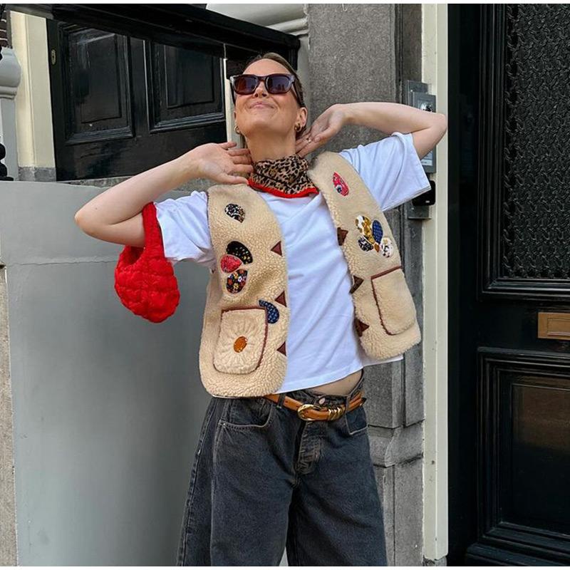 Женский жилет из овечьей шерсти с 3D-печатью, модный жилет без рукавов с V-образным вырезом и роговыми пуговицами 2024 года, новые утепленные женские майки на осень-зиму