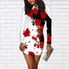 Длинные рукава облегающее платье с принтом 3D красного пиона женские мини-платья осенние облегающие эластичные вечерние платья