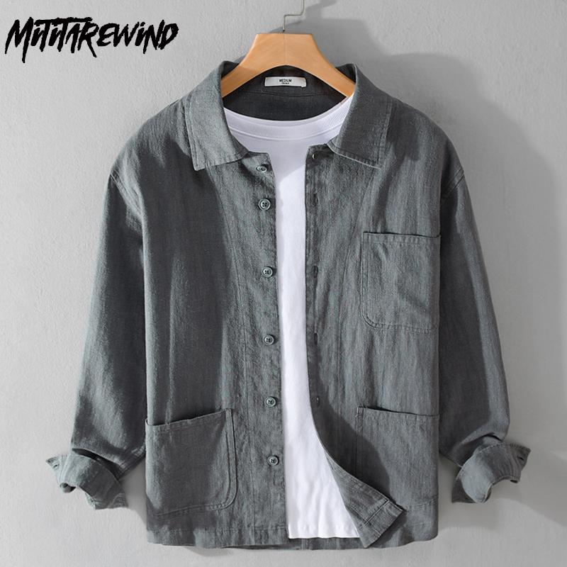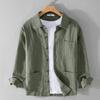 Весенние и осенние рубашки с длинным рукавом для мужчин в китайском стиле из хлопка и льна, повседневная мужская одежда с несколькими карманами, однотонная рубашка с воротником-лацкан