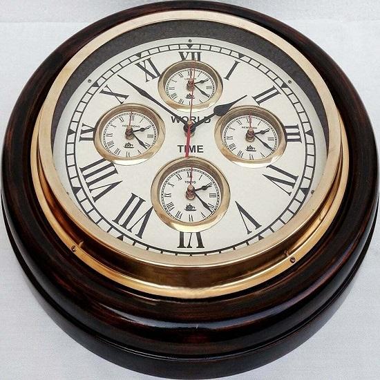 Кольцо из чистой латуни спереди придает королевский вид.. Высококачественные настенные часы для более высокой точности. Антикварные настенные часы Vitnage для домашнего декора, гостиной, а также офиса. Просты в уходе. Отделка : Блестящая латунь с деревом. Даже если вы не используете 4-часовую шкалу мирового времени, это придаст вашим стенам великолепный вид.
